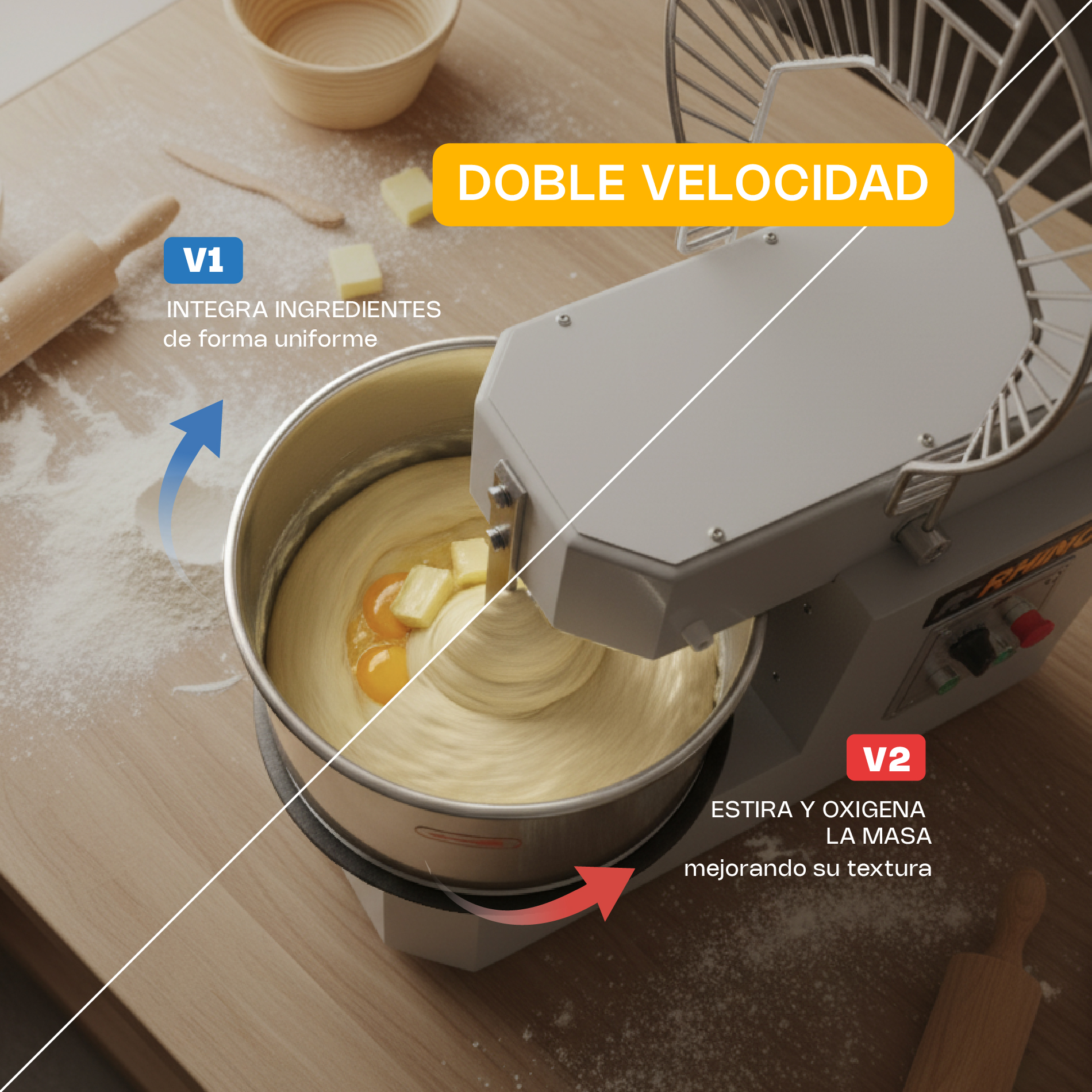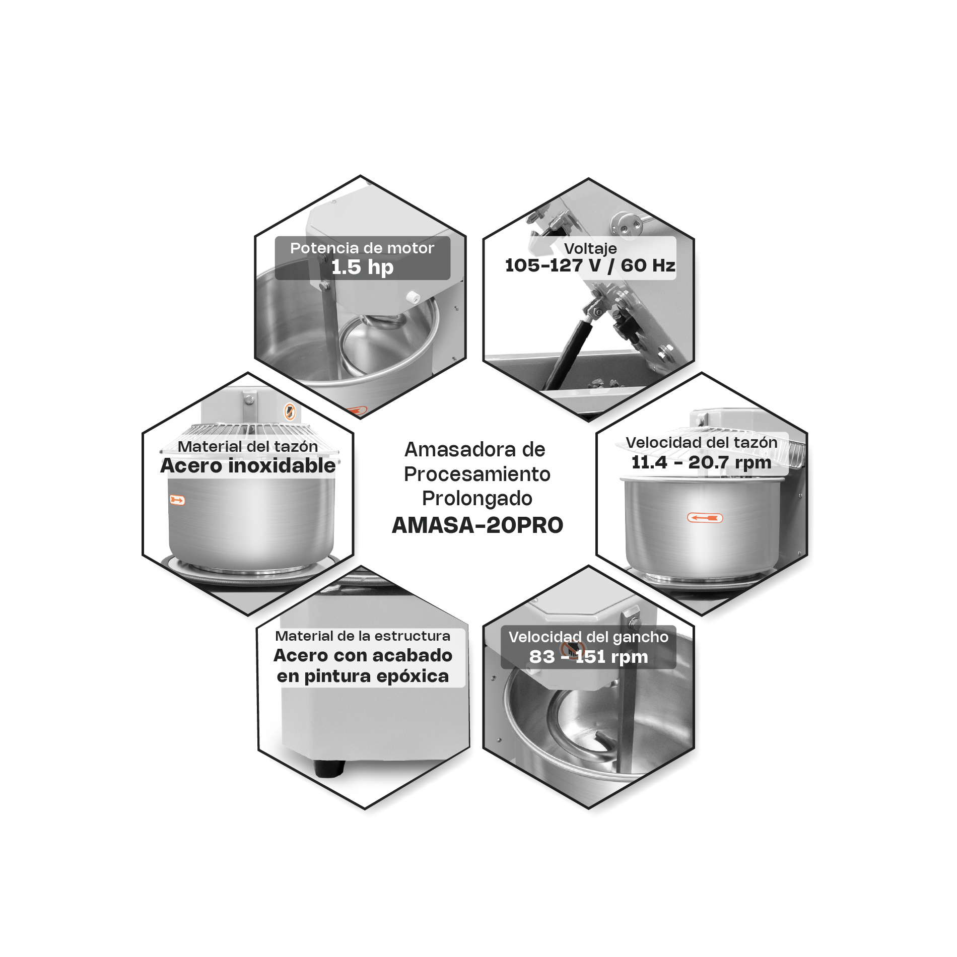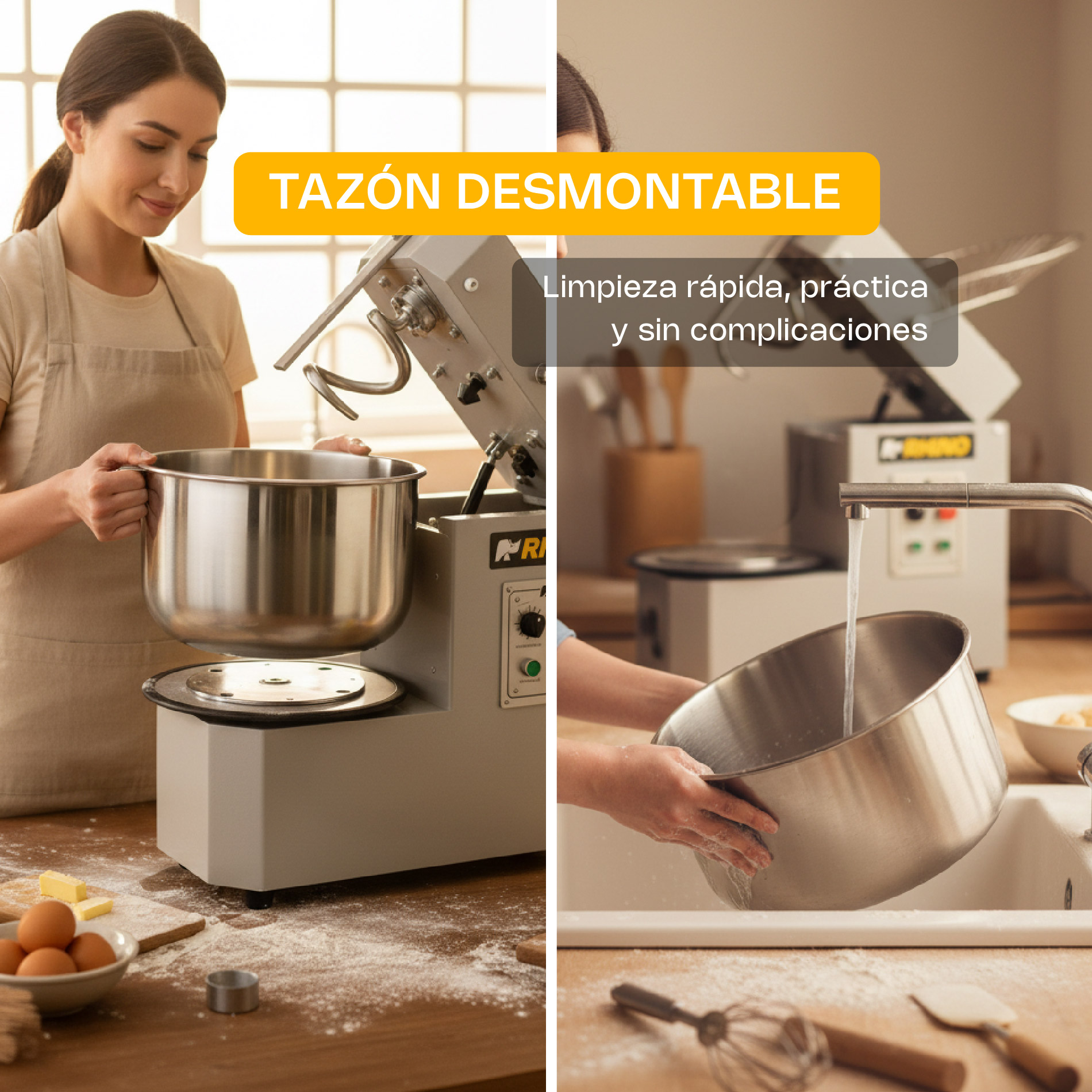 Diseñada para panaderías, pastelerías y negocios que requieren un trabajo intenso y prolongado, la AMASA-20PRO de Rhino es la solución ideal para obtener una masa de calidad superior en cada preparación.